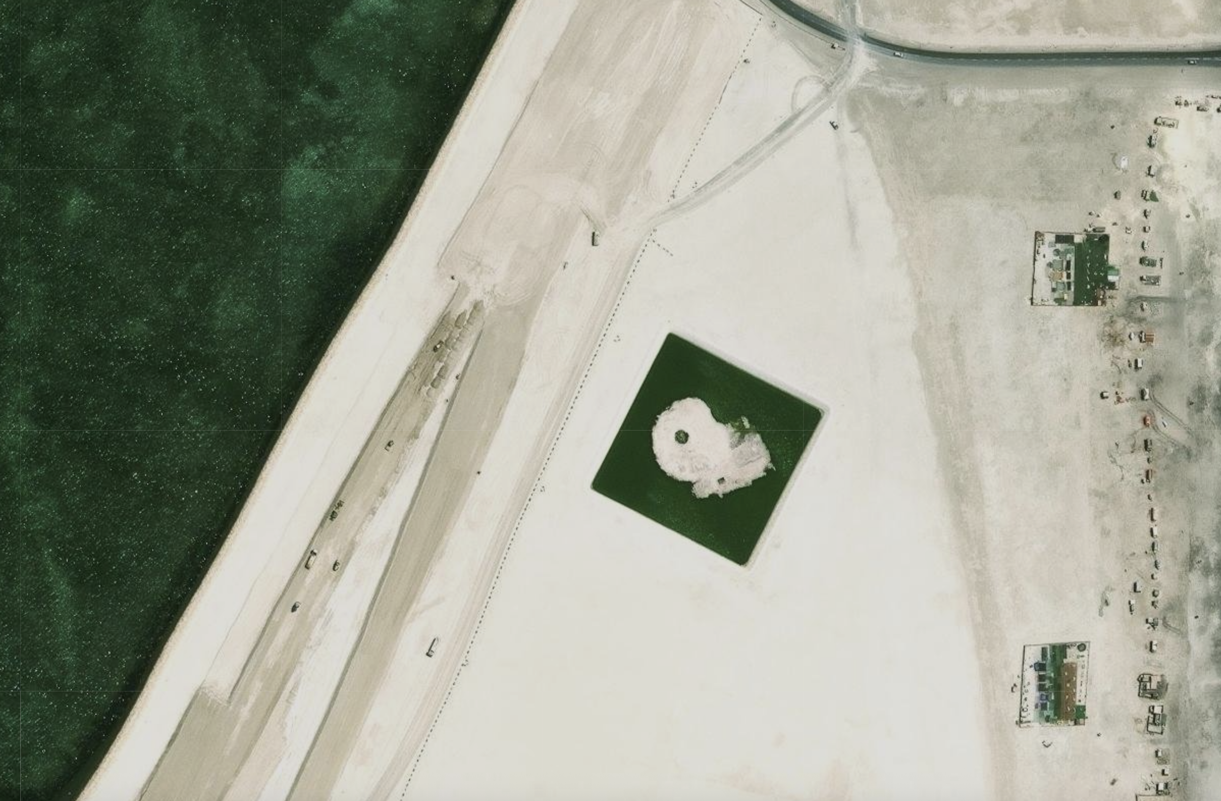 Aerial View of Al Sayah Island Today with its reclaimed border. Source: OpenStreetMap obtained from mapbh.org