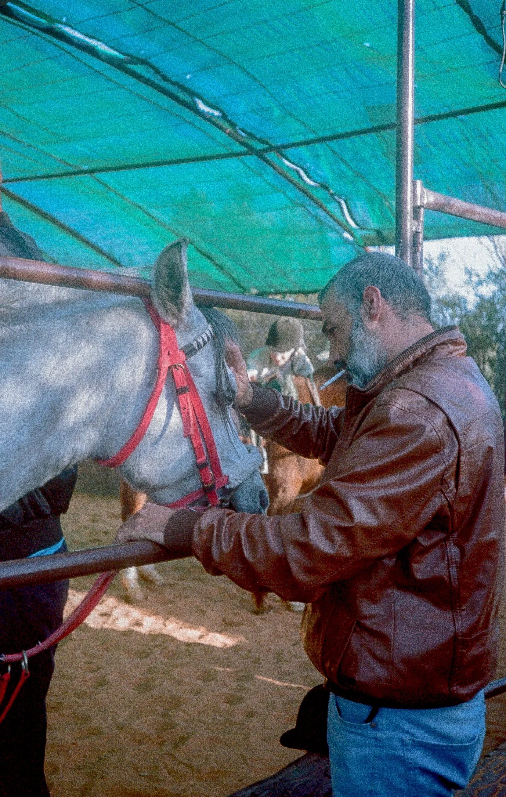 "I took this photo at a stable in Al-Adawi, Damascus, in September of 2025. I was taken by this gentleman’s tenderness towards his mare, a purebred Arabian. Cigarette in mouth, he kept petting, caressing, and saying sweet things to her – long before I approached with my camera, and long after I retreated. It was clear these two had a connection; I felt lucky just to be an observer. When I developed the roll, of the 16 exposures, I gravitated to this one the most. It wasn’t until some time later that I realised, for all the photos I see of Syrians, seeing Syrian (and Arab) men through a lens of gentleness, softness, and tenderness is rare. I thought about how the Syrian men close to me embody such traits—of gentleness, of care, of generosity—yet photography of Syrian men rarely shows it. I suppose it’s obvious: those qualities don’t sell, they don’t fit the narrative people want from Syria. But this photo says everything quietly, without insisting. And whenever I look at this photo again, I imagine that gentleman, still there, still caressing his mare, still saying sweet things to her."